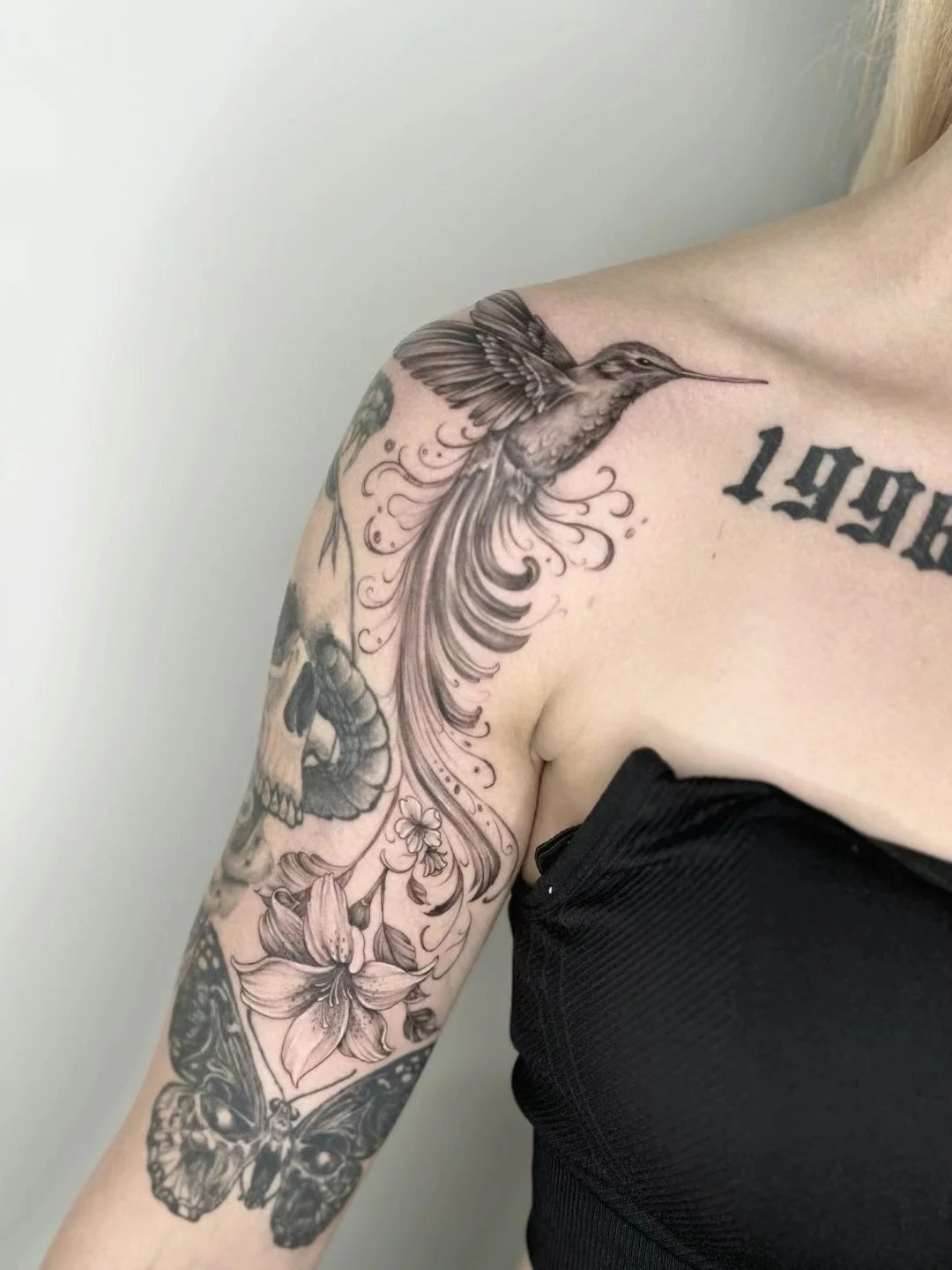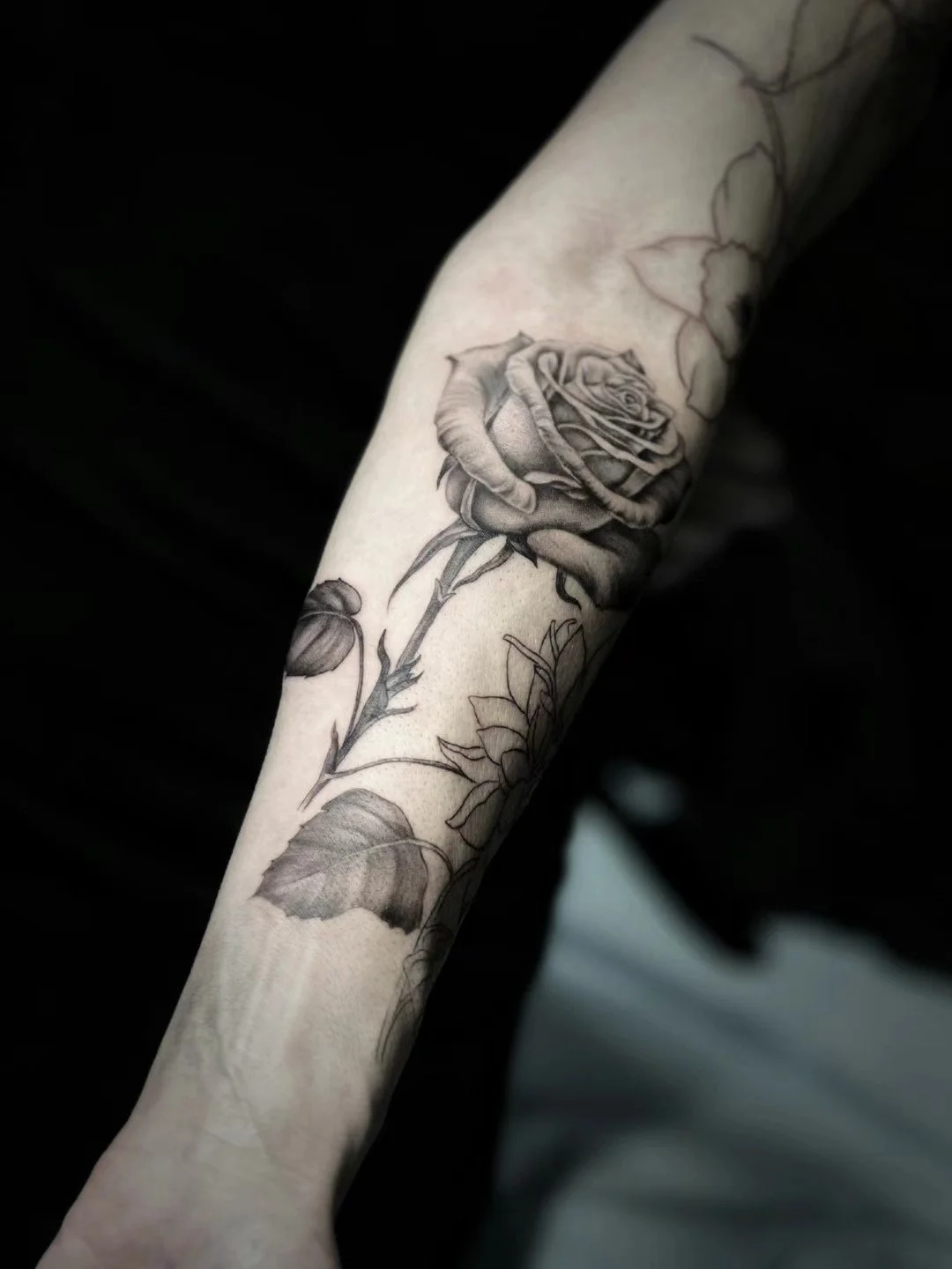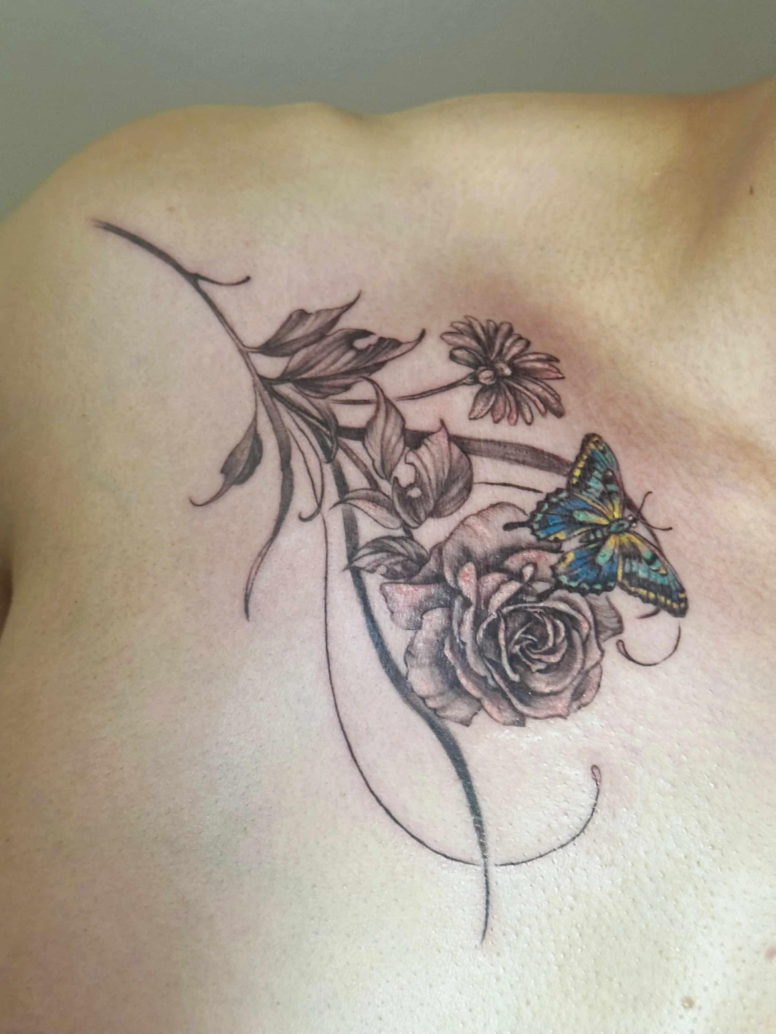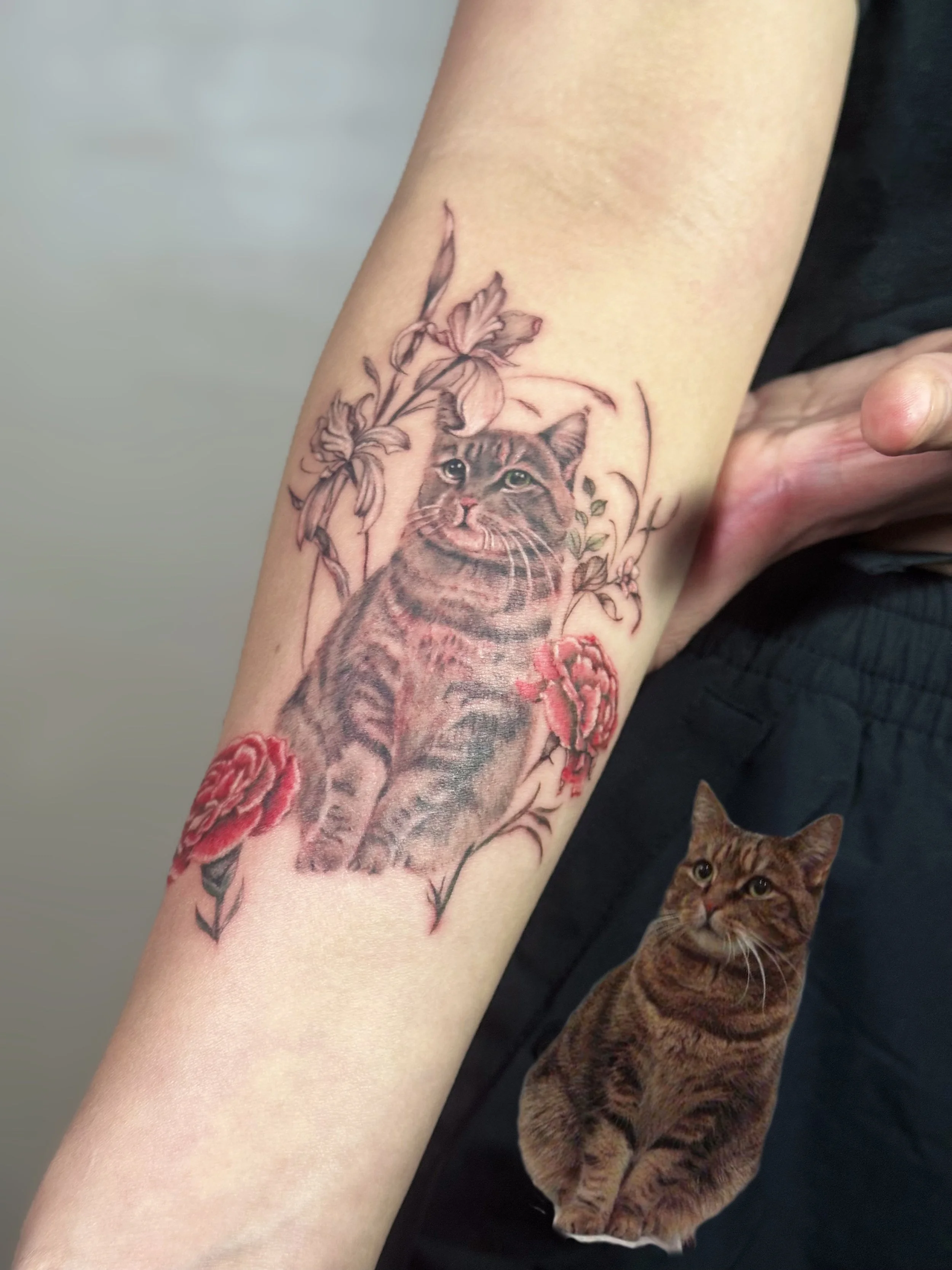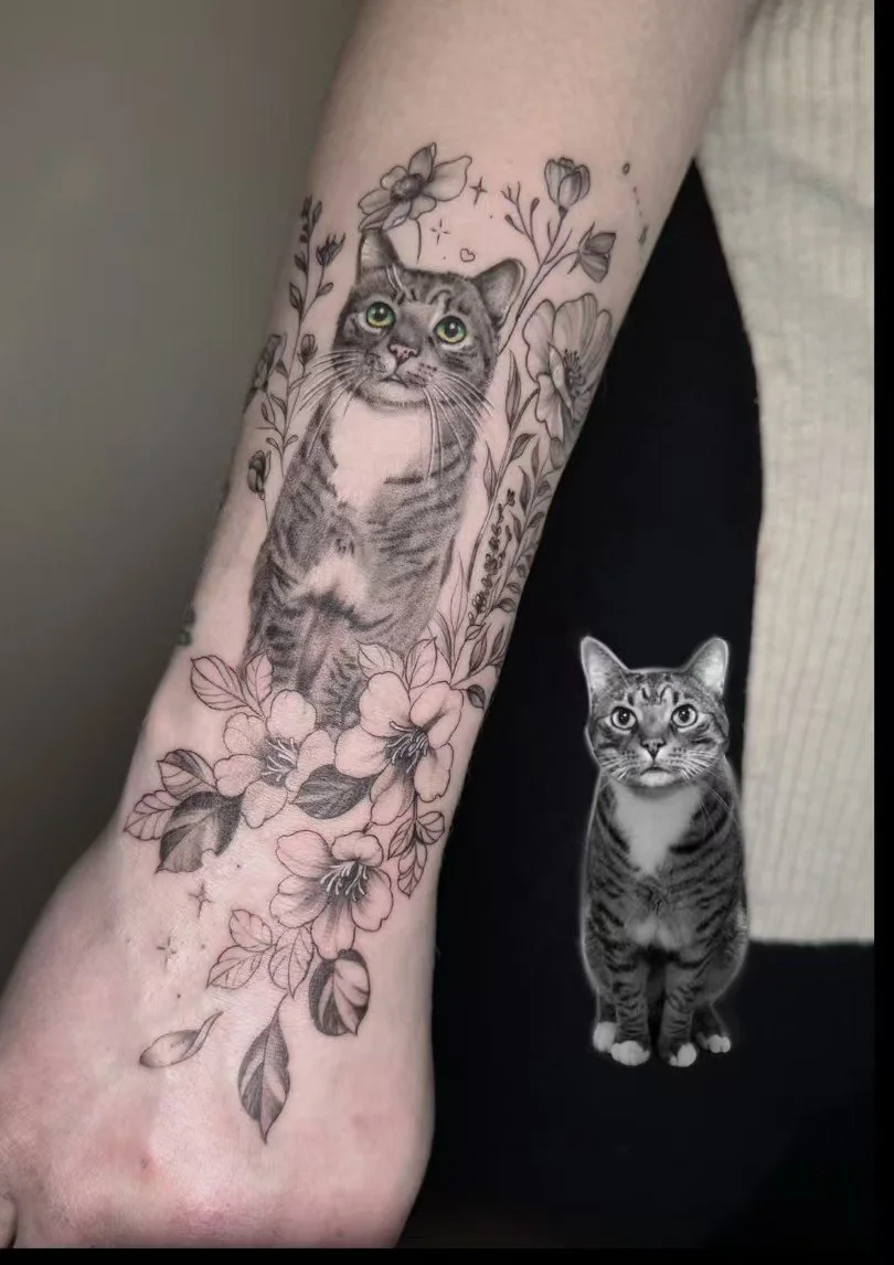 She also specializes in designing tattoos along with muscle directions and the shape of the body part, so that the design feels more like it “belongs” to your body part rather than just sitting on your body.