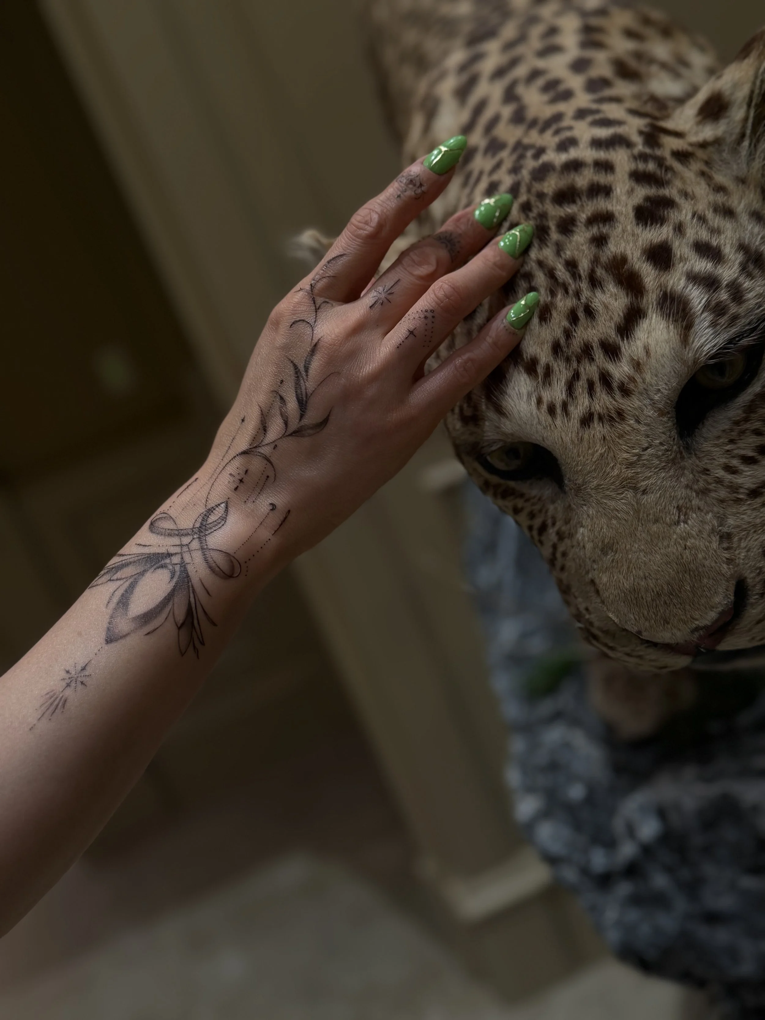 She does fineline, realistic styles and designs that are full of details. She really loves plants, florals, jewellery, cute, and weird things.