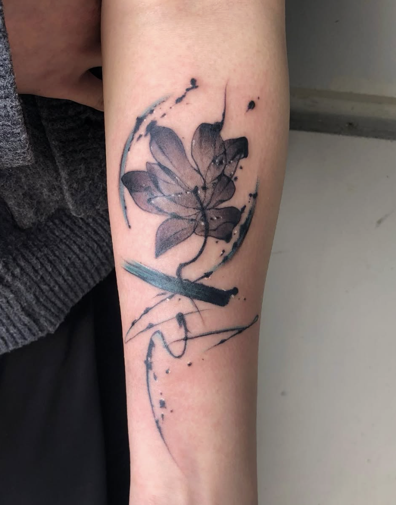 Tattoo Style: Fine Line → Bold, Abstract, Brush Stroke, Detailed, Black Work